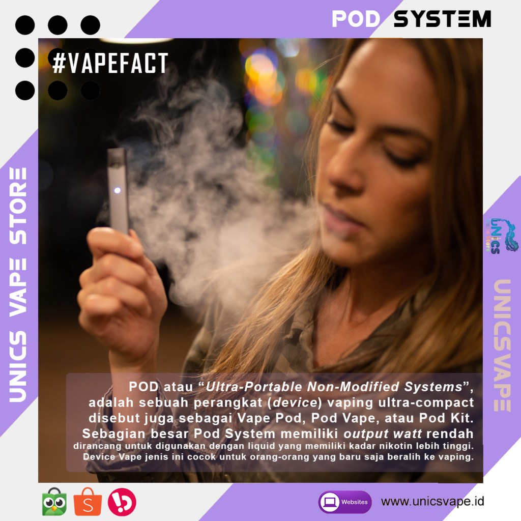 POD atau “Ultra Portable Non-Modified System” alias “Sistem ultra-portabel” adalah sebuah perangkat (device) vaping ultra-compact yang disebut juga sebagai Vape Pod, Pod Vape, atau Pod Kit.