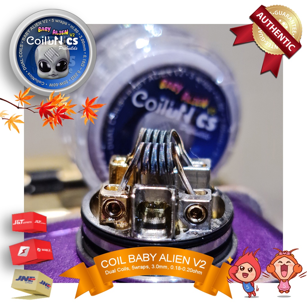 - CoiluNics Prebuild Baby Alien V2 – Dual Coils – USA ni.80 – 3.0mm – 5 wraps | This is the best selling products for you who use Dual Coil RDA / RTA and prefer a better material using NiChrome80 USA and wanting more crackles which deliver a better flavor for you;